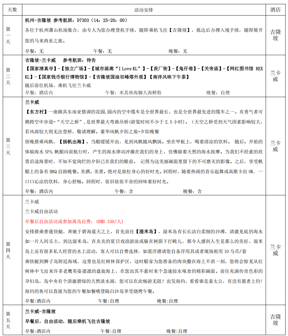 3.用餐:行程中团队标准用餐,(中式餐或自助餐或特色餐,自由活动期间用餐请自理;如因自身