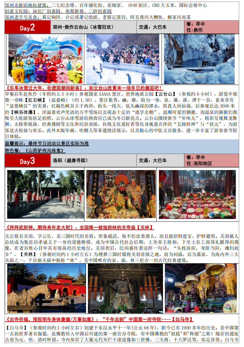发班日期: 2 月 17 日(初一)、2 月 18 日(初二)、2 月 19 日(初三) 2 月 20 日(初四)、2 月 21 日(初五)、2 月 22 日(初六) 普通版 30 人:3 钻升级 1 晚 4 钻 成人:60 岁以上老人优惠 350 元/人,70 岁以上优惠 400 元/人 儿童:12 周岁以下含赠送项目、车位、餐费,产生门票、早餐现付,需要占床按房差补 PLUS 版 15 人:全程 4 钻酒店 成人:60 岁以上老人优惠 350 元/人,70 岁以上优惠 400 元/人 儿童:12 周岁以下含赠送项目、车位、餐费,产生门票现付、早餐,需要占床按房差补 备注:18 岁以下不占床必须按照儿童价报名,不接受成人-门票-房差 本产品可以接待外宾及港澳台同胞